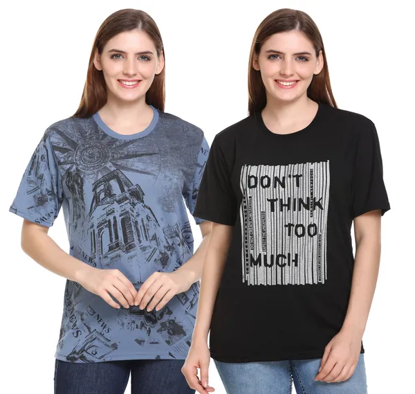 Pack Of 2 Black & Blue Premium Polyester Round Neck Half Sleeve Printed T-S..More