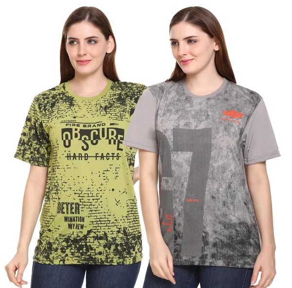 Pack Of 2 Green & Grey Premium Polyester Round Neck Half Sleeve Printed T-S..More