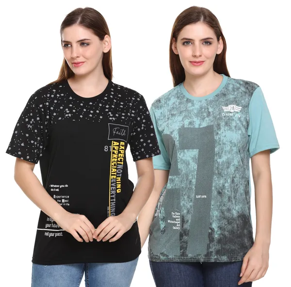 Pack Of 2 Sea Green & Black Premium Polyester Round Neck Half Sleeve Printe..More