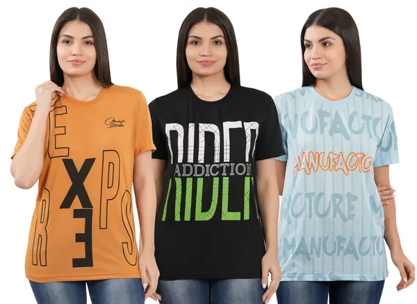 Pack Of 3 Black & Sky Blue & Mustrad Premium Polyester Round Neck Half Slee..More